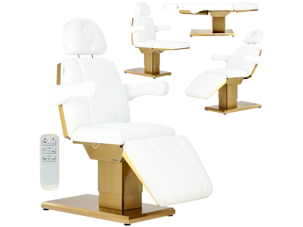 Elektrické kosmetické křeslo M806 3 motory bílo-zlaté
